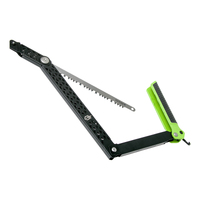 Portable. Safe. Functional. This innovative saw folds up flat for transport and utilises 4 pivot points upon release to create a secure handle grip and 12 inch cutting surface. Bright green accents are easy to spot at the campsite, keeping you aware and safe. Accepts all standard 12" blades making replacement simple.